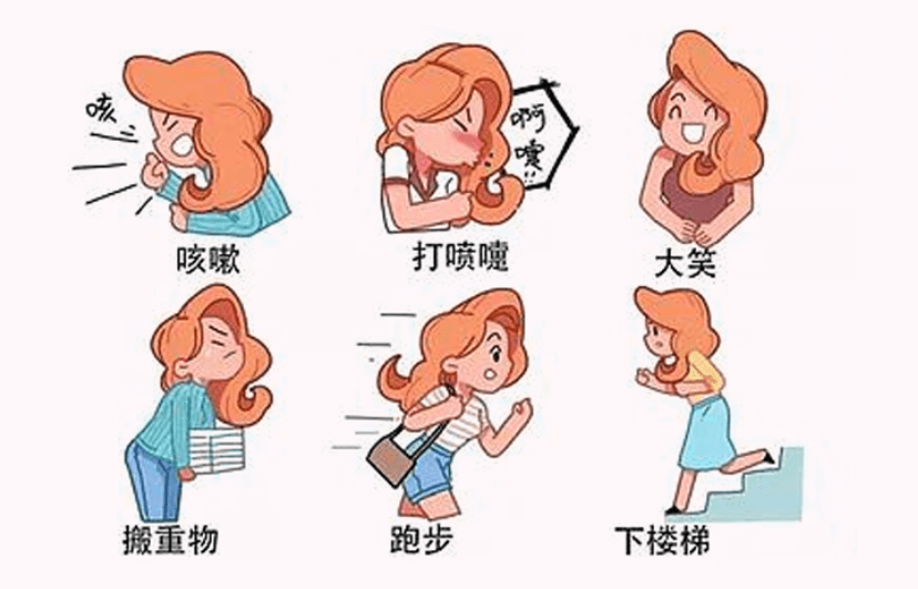 轻、中度压力性尿失禁(打喷嚏、咳嗽、跳绳、爬楼梯、快步走漏尿等)、急迫性尿失禁(尿频、尿急、夜尿次数多、听到流水声想小便等)、混合性尿失禁(同时存在压力性尿失禁和急迫性尿失禁)。