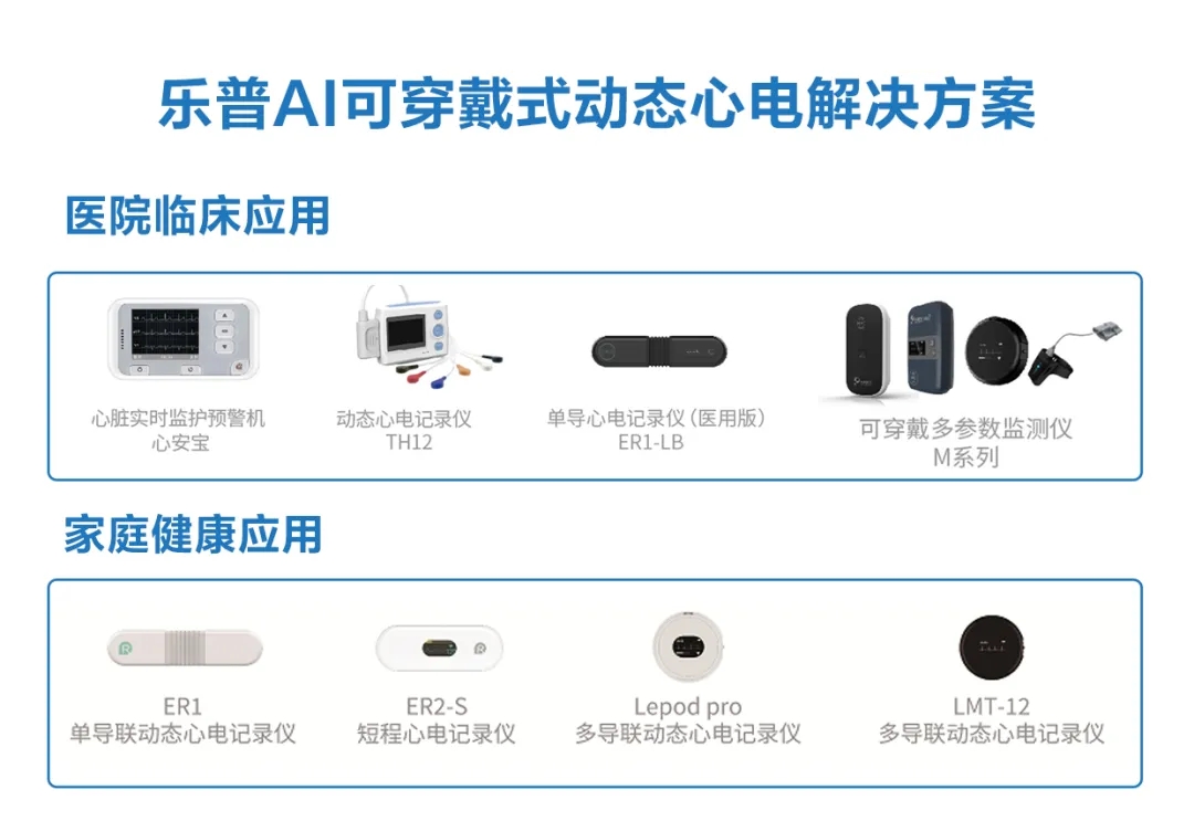 依托乐普AI-ECG、云平台及互联网等技术,乐普医疗致力于构建全面的人工智能动态心电解决方案,可提供涵盖短程/长程、单导/多导的可穿戴式远程动态心电记录设备,并根据各级机构需求提供远程心电数据监测、异常心电实时预警、长程数据分析、大数据分析、人工预警等差异化定制的专业服务。这些服务不仅满足了院内健康监测的需求,也为家庭健康监测提供了有力的支持。