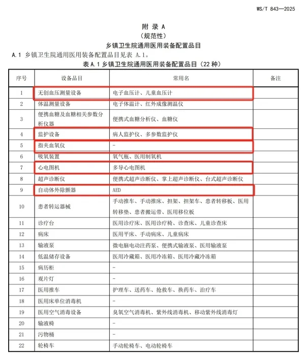 近日,国家卫生健康委发布了推荐性卫生行业标准《乡镇卫生院医用装备配置标准》(WS/T 843-2025),该标准自2025年10月1日起施行。这一政策旨在提升乡镇卫生院的医疗装备水平,满足基层群众的健康需求。